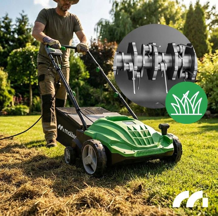 ⏩Efektywne odnowienie trawnika – urządzenie usuwa mech, filc i nagromadzone resztki roślinne, dzięki czemu woda, powietrze i składniki odżywcze łatwiej docierają do korzeni.